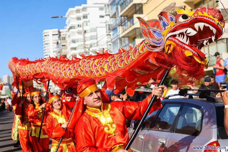 当地时间2025年1月16日,智利寰球投入舞龙舞狮等中国传统习尚扮演,喜迎新春,勾引数千名不雅众驻足不雅看。视觉中国供图