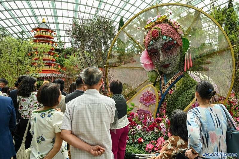 当地时间2025年1月17日,“白蛇传”立体花坛亮相新加坡滨海湾花圃的春节主题花草展览。游客纷繁前来合影迷恋。视觉中国供图