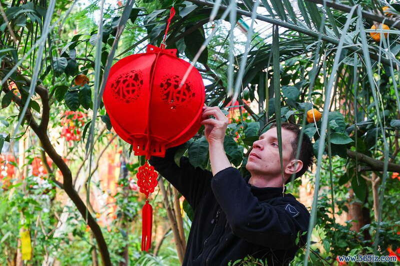当地时间2025年1月20日,俄罗斯莫斯科国立大学植物园(药草园)责任主谈主员在亚热带温室内交代新春荫庇,管待行将到来的中国春节。视觉中国供图