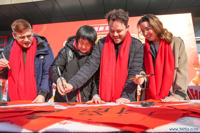 2025年1月18日,在浙江省湖州市德清县武康街谈新丰社区,异邦友东谈主在当地书道嗜好者的指导下写福字。视觉中国供图