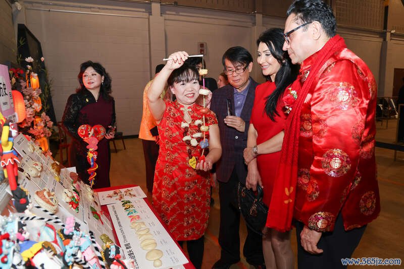 当地时间2025年1月10日晚,中国驻多伦多总领馆在大多伦多中中文化中心举行庆祝蛇年春节暨建馆40周年招待会。招待会现场特殊修复了春节年俗展示区,加拿大联邦众议员马万里(Majid Jowhari,右)佳偶在展示区赏玩中国面塑作品。视觉中国供图