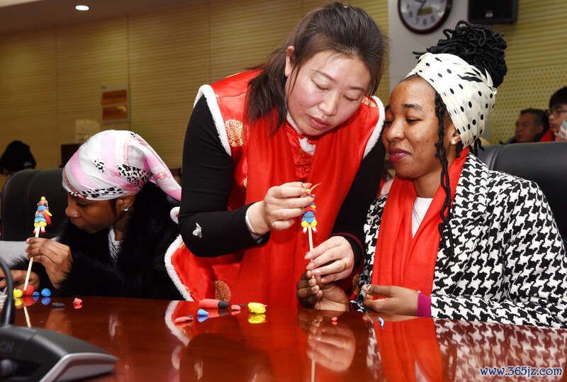 2025年1月22日,江苏海洋大学异邦留学生在非遗传承东谈主的指导下体验非遗面塑。视觉中国供图