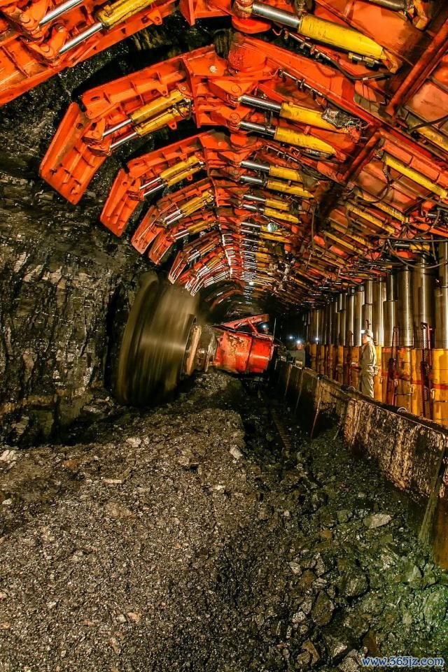 上图:内蒙古鄂尔多斯机械化煤矿开采,