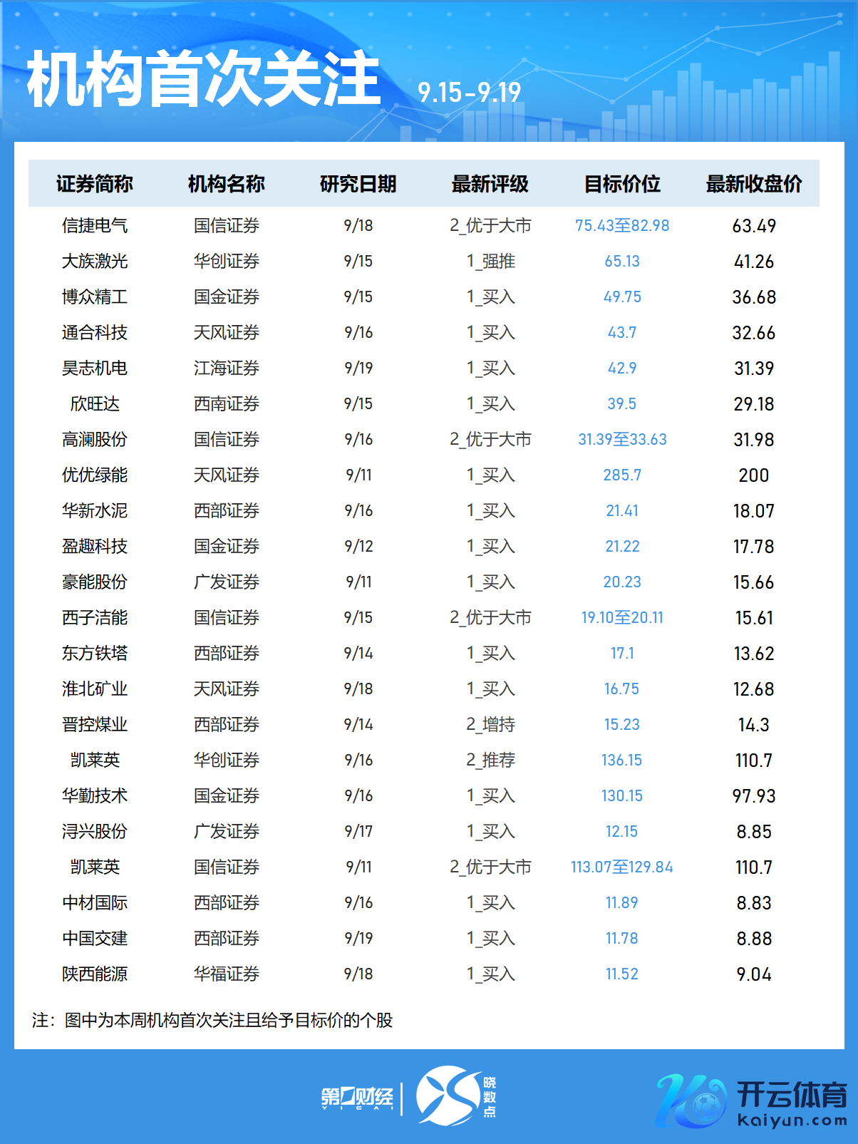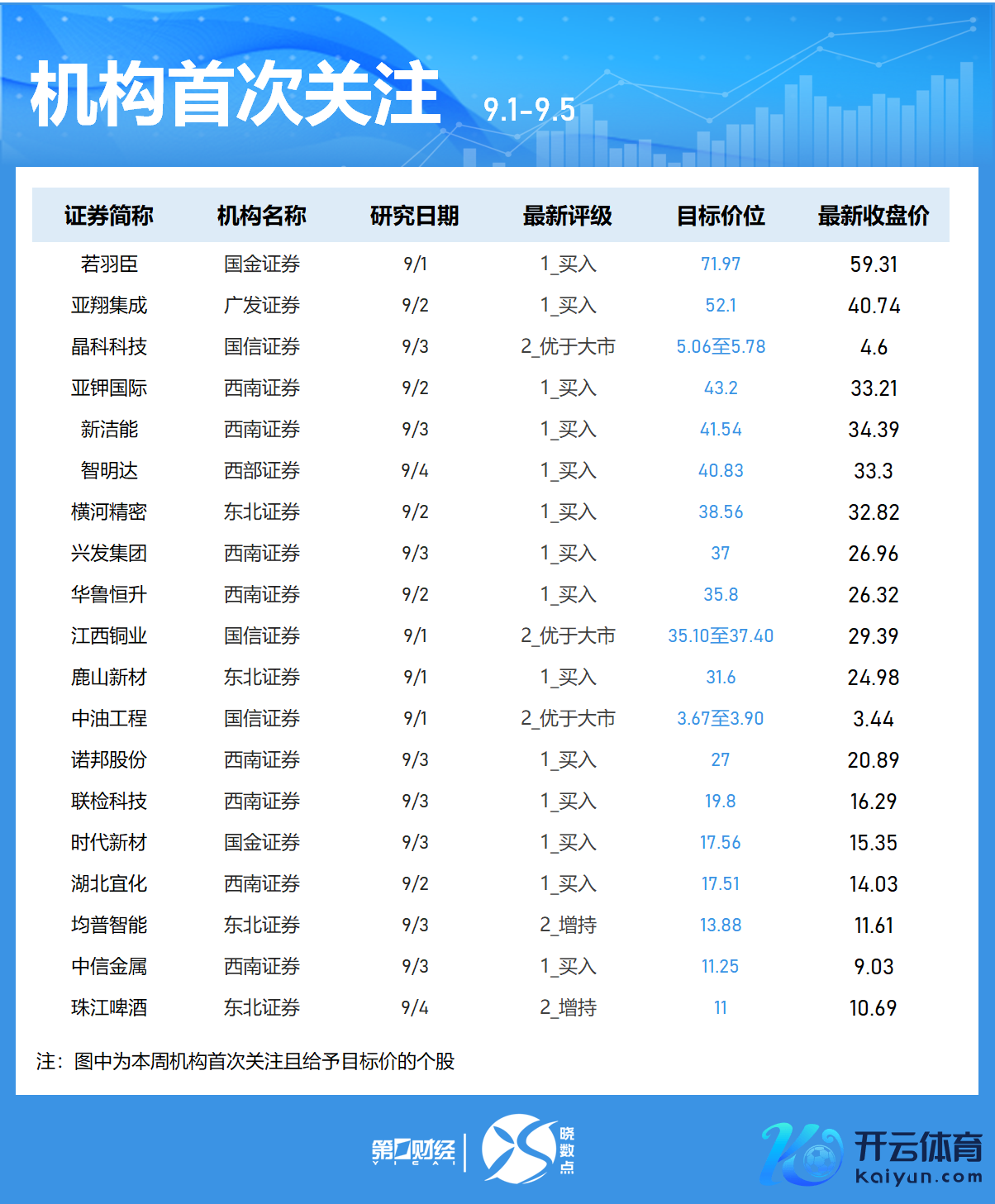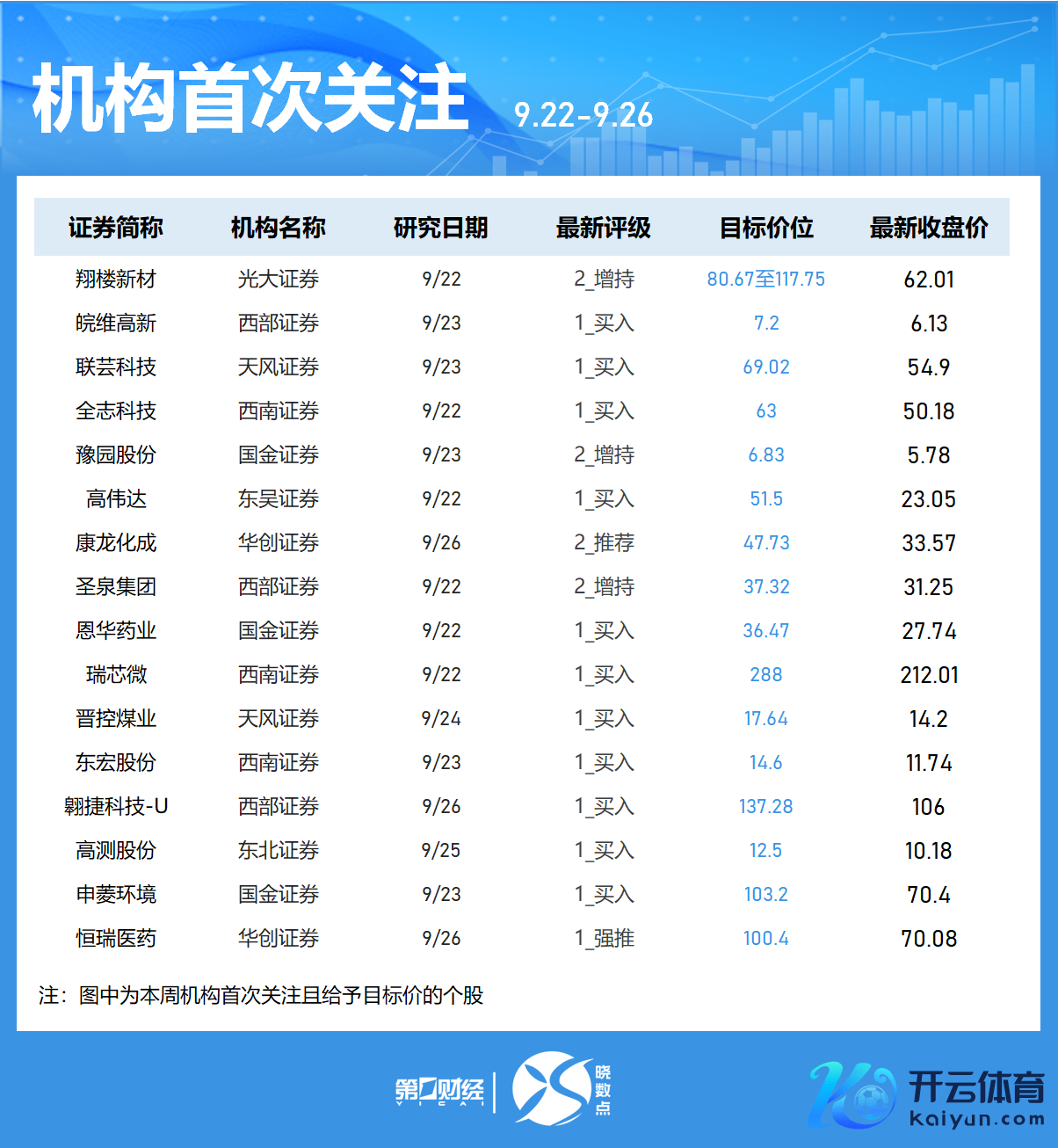 Wind数据露出,机构本周初次热心46只个股,12股被给以见识价。-中芯外洋获西部证券给以“增握”评级,见识价146.45元,该股最新收盘价为121.98元;-天有为获天风证券给以“买入”评级,被给以见识价145.2元;-朔方华创、服气服、盐津铺子等个股在列。